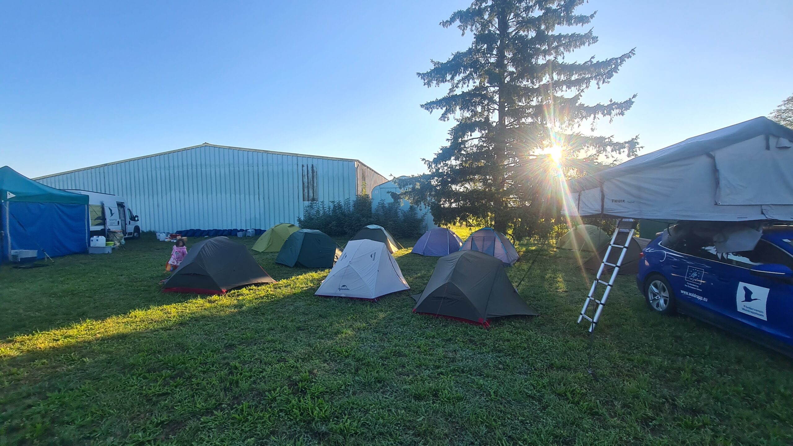 Der nächste Startversuch nach einer kurzen Pause war erfolglos – die Vögel wollten nicht weiterfliegen. Wir entschieden uns, sie zum Flugplatz Hütten-Hotzenwald nahe der französischen Grenze zu transportieren, wo wir die Voliere im strömenden Regen wieder aufbauten. Die Nacht war kalt, der Morgen neblig – aber am Ende zeigt sich immer die Sonne.