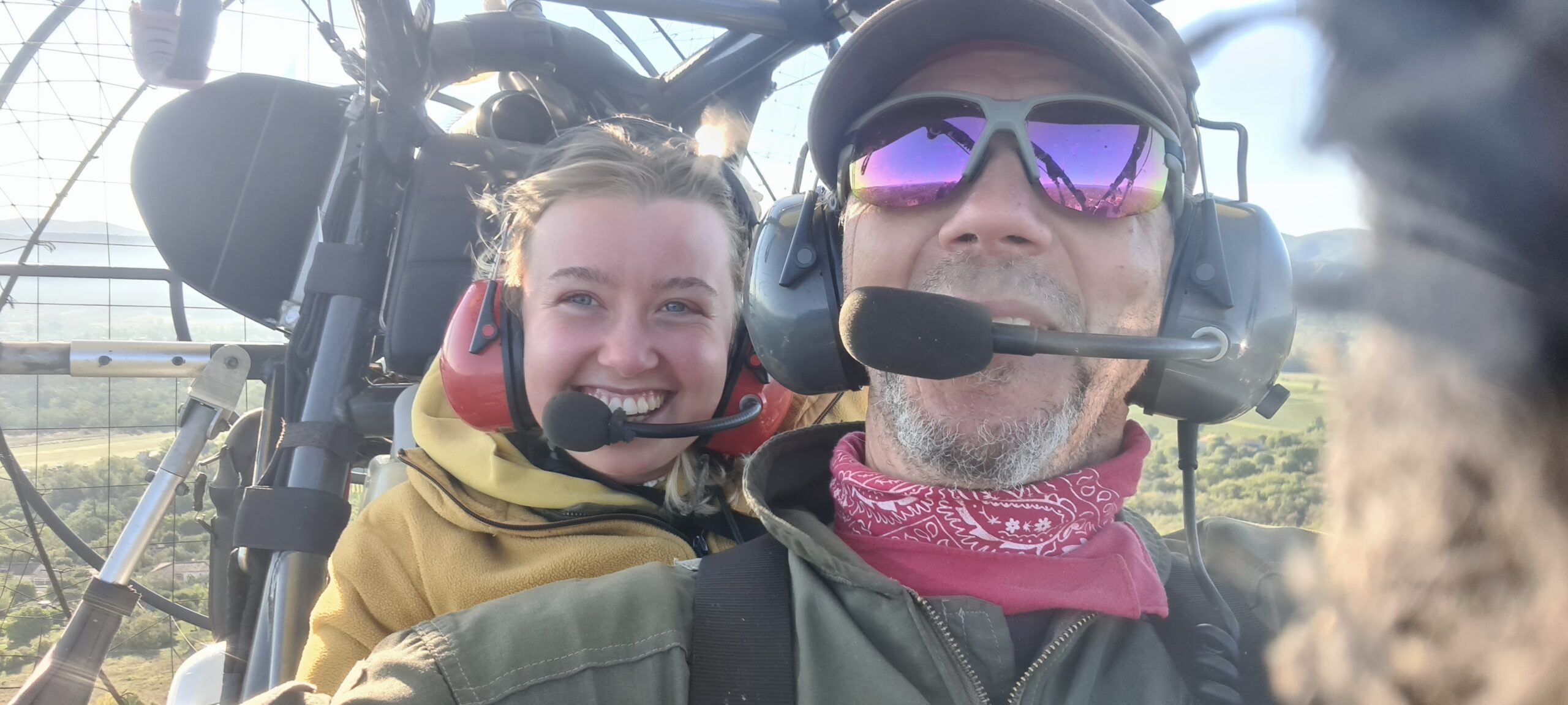 Migrationsabschluss. Heute Morgen absolvierte das Flugteam, bestehend aus Pilot Johannes Fritz und Ziehmutter Johanna Haas, einen für die diesjährigen Bedingungen erfolgreichen letzten Flug. Bereits die Großgruppe ließ sich zumindest ein Stück weit über die Grenzen des Flugplatzes in der Nähe von Perpignan hinausführen. Nach einer Verkleinerung der Vogelgruppe folgten die Waldrappedem Fluggerät sogar mehrere Kilometer in Richtung des Passes über die Pyrenäen. Obwohl die Vögel anschließend wieder umkehrten, konnten sie damit einen weiteren wichtigen Orientierungsflug in dieser für sie bedeutsamen Region unternehmen.