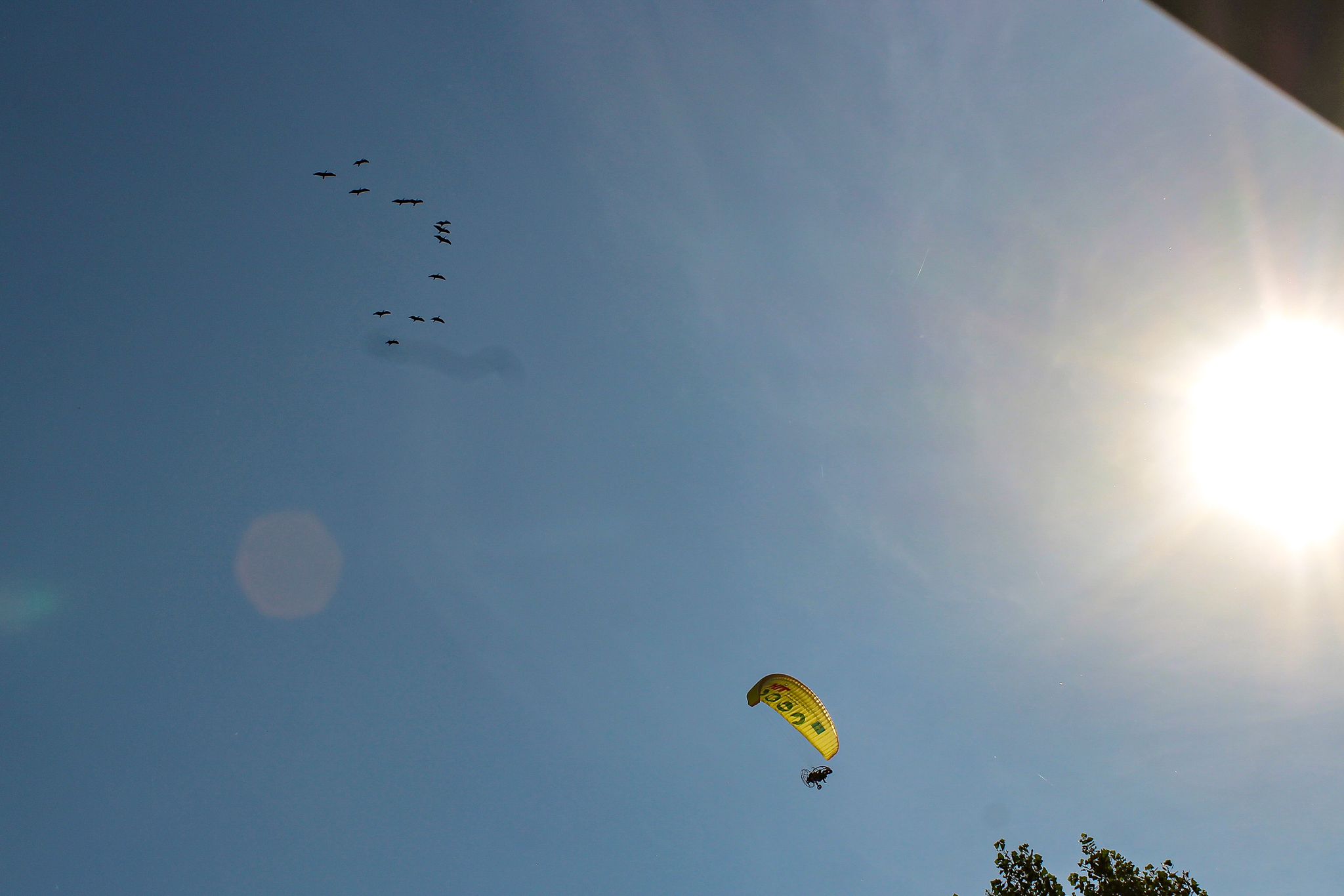 Die folgenden zwei Freiflüge waren dann aber sehr gut, die Vögel flogen nicht so weit weg und folgten immer den Anweisungen der Zieheltern.